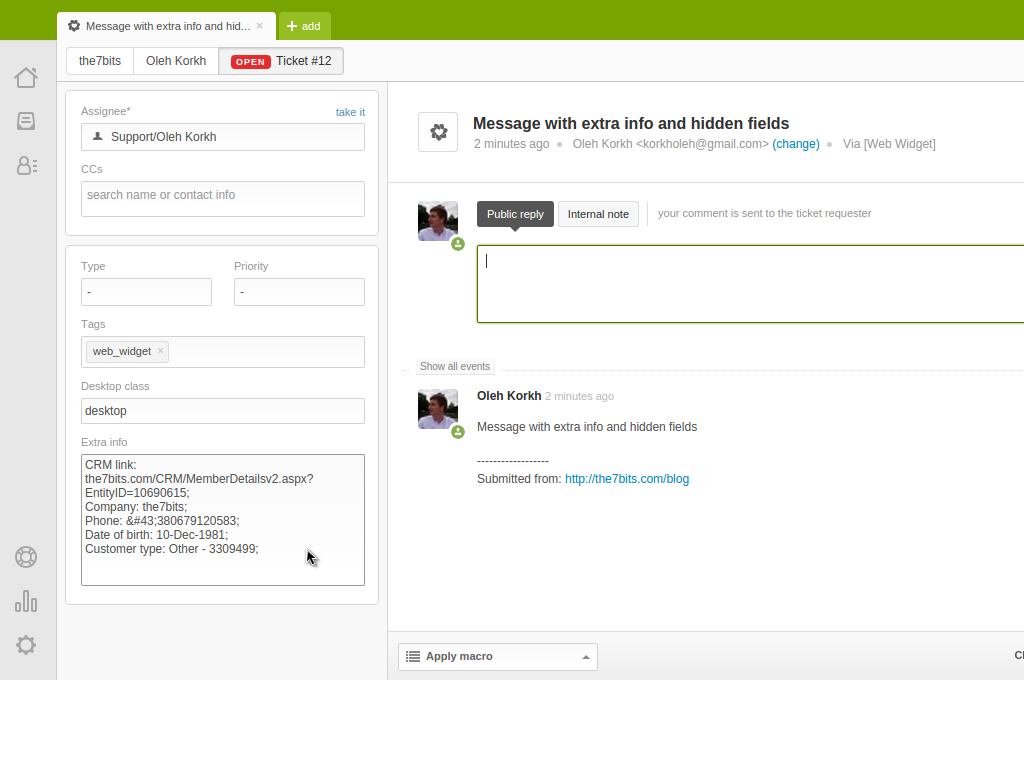 It is even possible to set powerful Zendesk active triggers, using these extra CRM data.