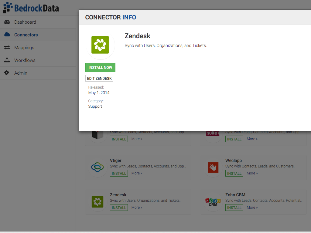 Bedrock Data is a bi-directional integration platform that allows users to sync Zendesk with dozens of additional business systems.