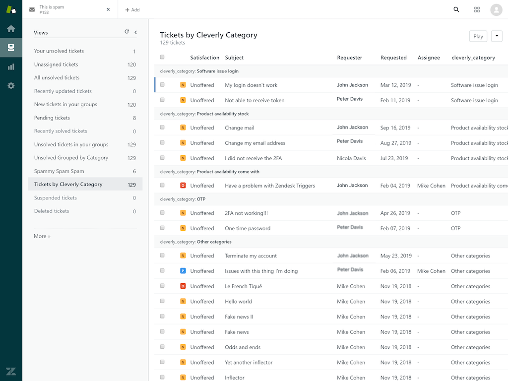 - Triage: Have you ever wondered what you could do if you knew what a ticket is about, right when it arrives at your inbox? Cleverly automatically classifies incoming customer requests according to a proprietary taxonomy, tailored to each of our clients’ use case (and covers different industries such as retail, software, insurance, financial services, among others). This categorization helps you prioritize requests, optimize work distribution and bring you metrics that are 100% reliant.
