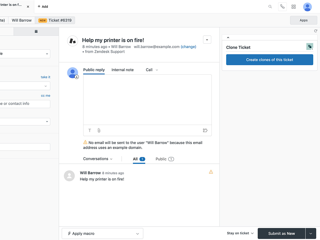Cloned tickets are also effective for onboarding new agents by enabling them to practice solving issues before helping customers.