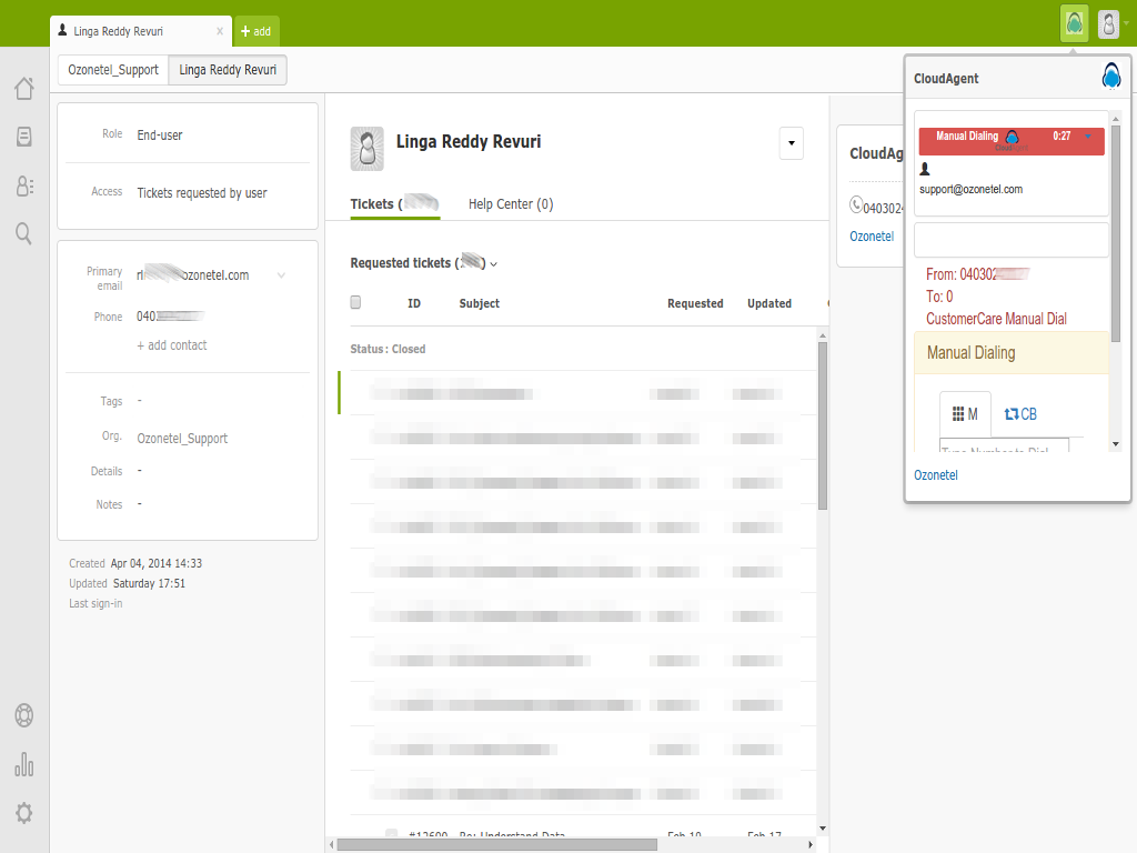 Done. You don't need to do anything else. Once you log in to Zendesk, you can access your Cloudagent interface in the top bar. Login to your Cloudagent account and start with your calls.