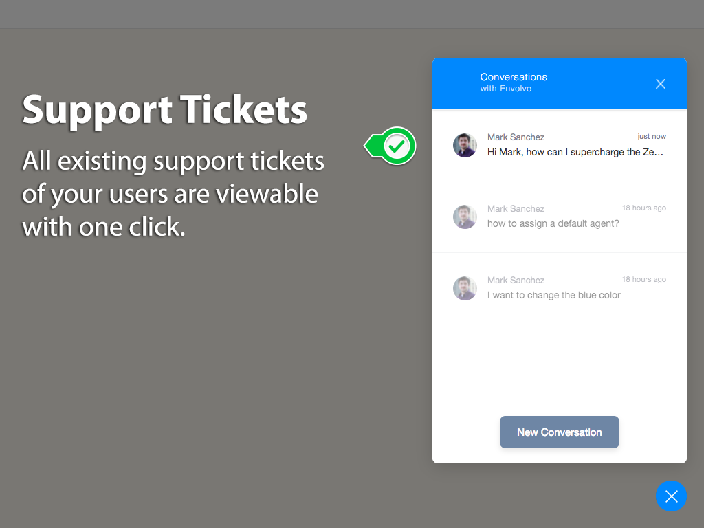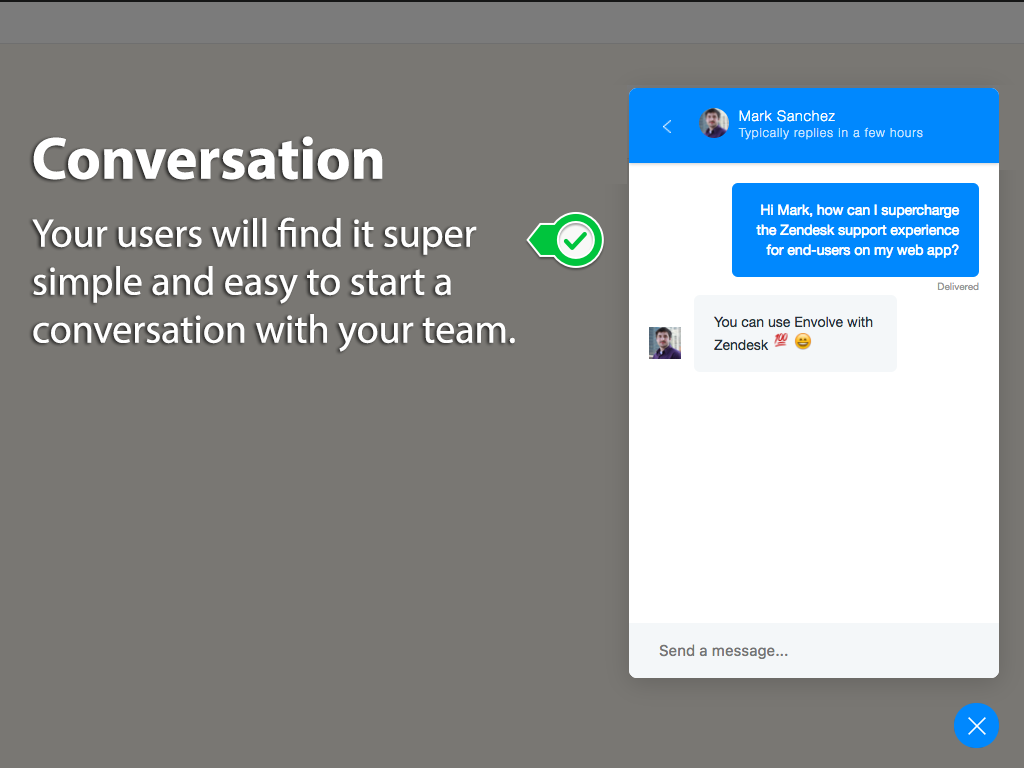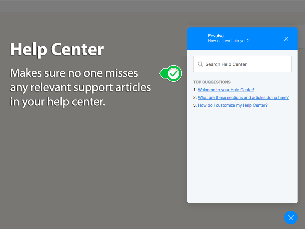 The Envolve widget sits on your site providing your users with a friendly support experience. At the same time, it reduces tickets by 70% by providing easy and timely help center articles.