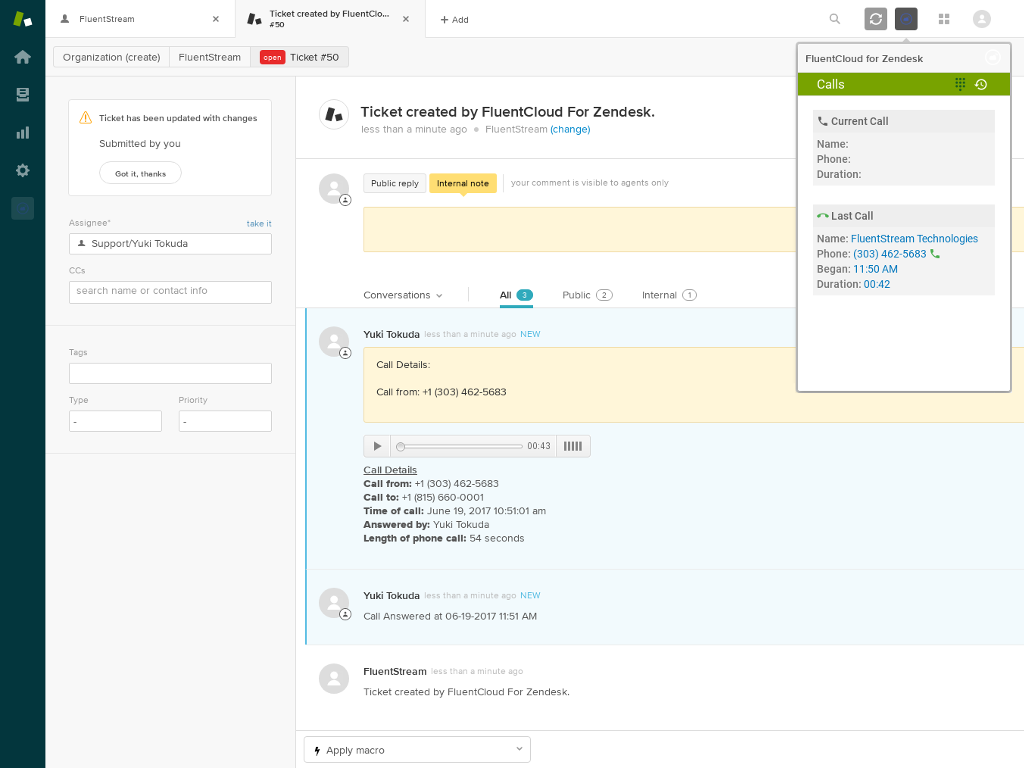 - Smarter Communication: FluentStream links your business calls to customer data within Zendesk. Access or augment information, instantly.