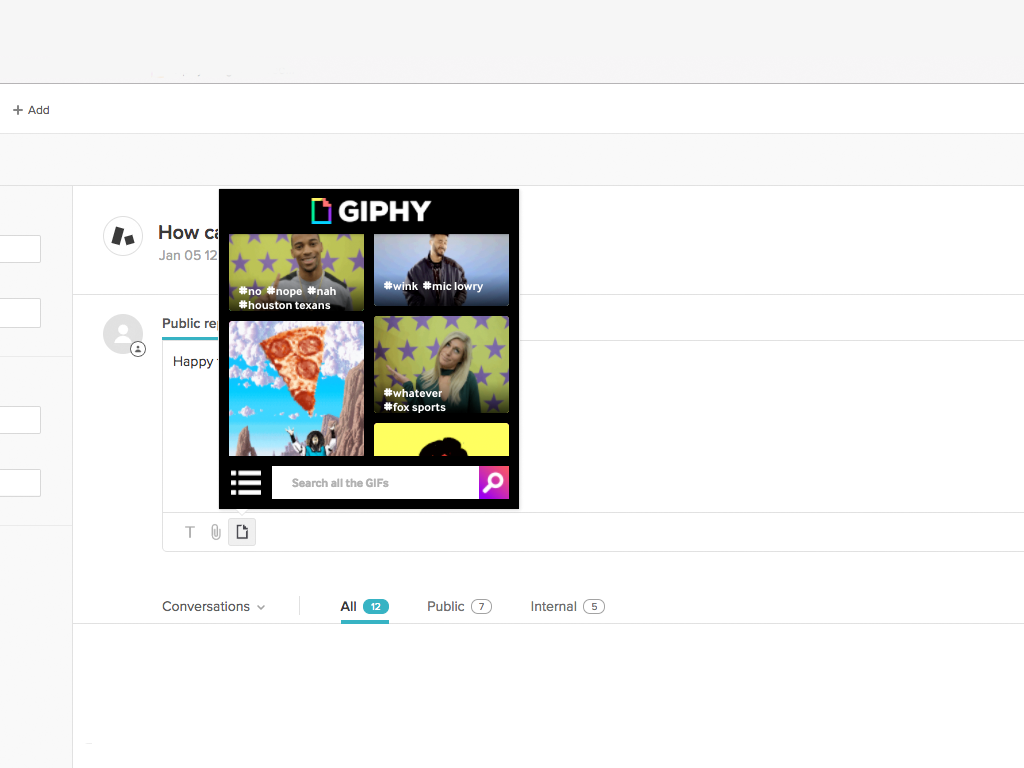Bring the power of a GIF search engine to Zendesk. Add GIFs to your tickets!
