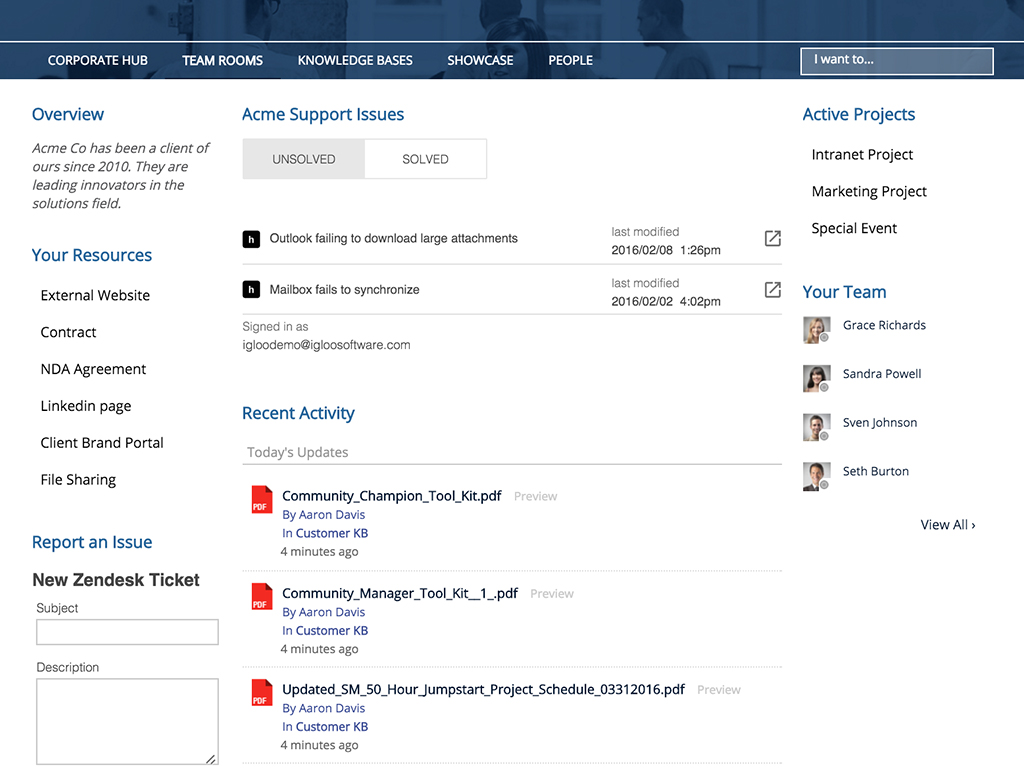 - Give your customers direct access to IT from anywhere. Strengthen customer relationships by creating more personalized experiences with an Igloo customer room that includes a direct IT resolution channel with Zendesk.