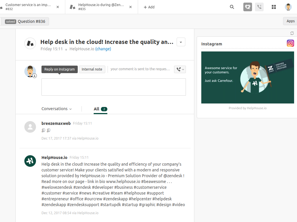Instagram channel integration for Zendesk - made by helphouse.io