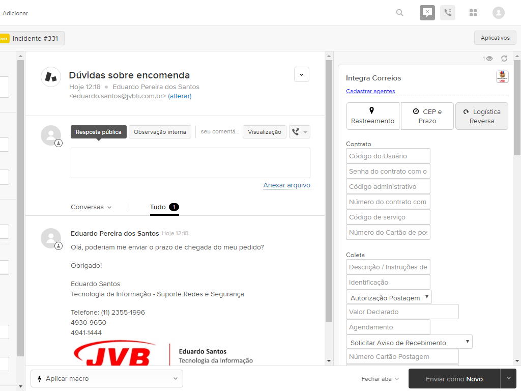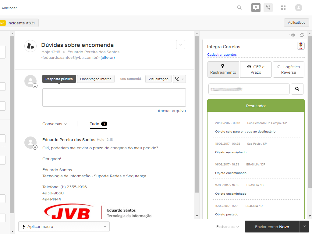 Permite utilizar os serviços dos Correios de Rastreamento de Objeto, Pesquisa de Endereço via Cep, Prazo de Encomendas e Cálculo de Preços de múltiplos serviços (SEDEX, PAC, etc), direto da sua plataforma Zendesk. A versão completa habilita a função de Logística Reversa, que é o serviço de remessa de documentos e mercadorias em devolução, sem ônus ao remetente, para serem entregues exclusivamente no endereço indicado pelo cliente, podendo ser uma localidade diferente do endereço de sua sede.