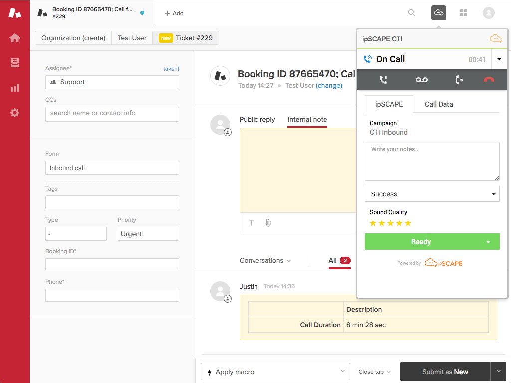 The ipSCAPE Contact Centre adaptor for Zendesk will enable:
