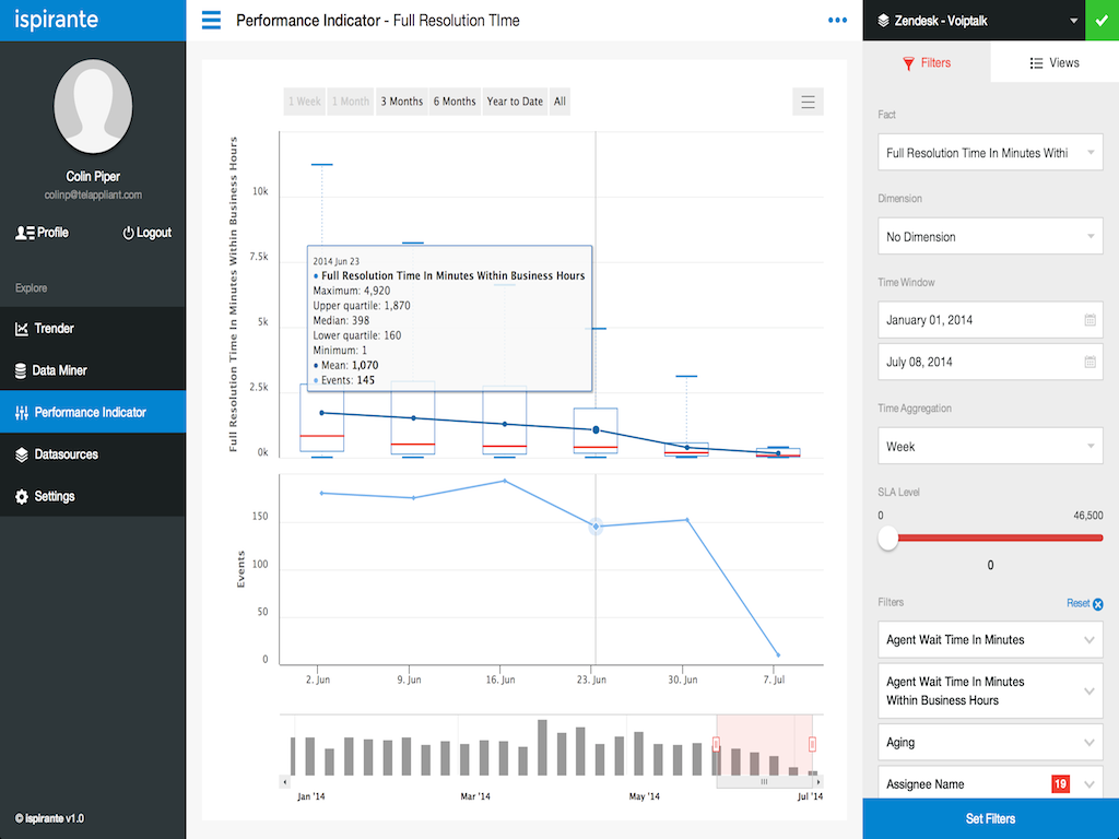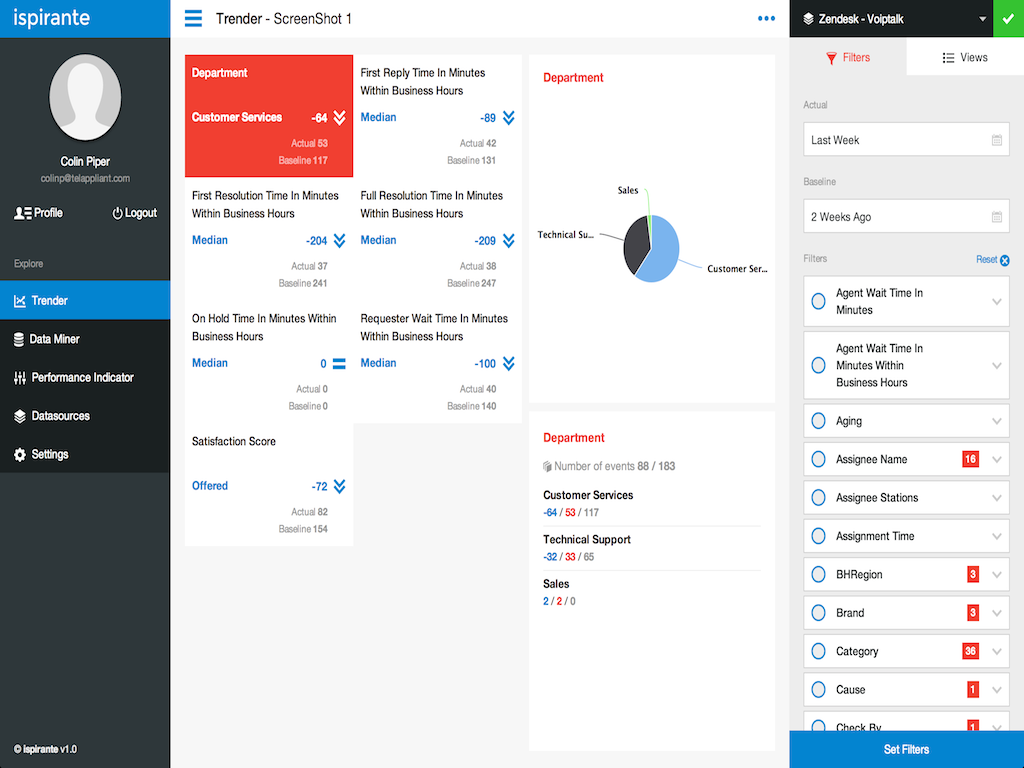 Requiring minimal configuration and setup, ispirante jump starts the process for analyzing service performance and improving customer satisfaction.