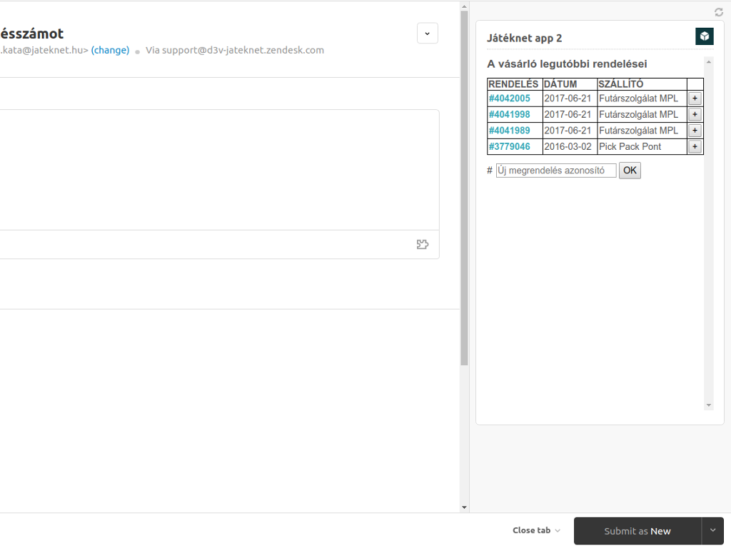 Asks Játéknet API about order data related to current ticket. Displays it besides the ticket. Also it provides a link to jump to order details on jateknet.hu admin page.