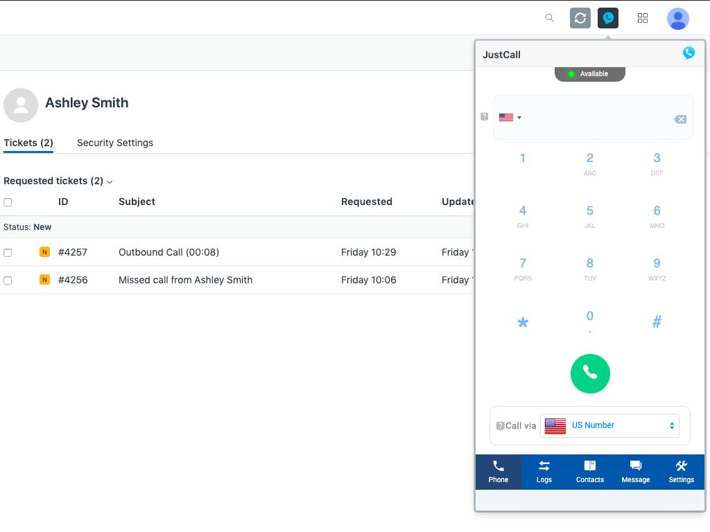 - Provider your Zendesk portal URL and authorise JustCall. Once integrated you will find JustCall creating tickets for your conversations on Zendesk.