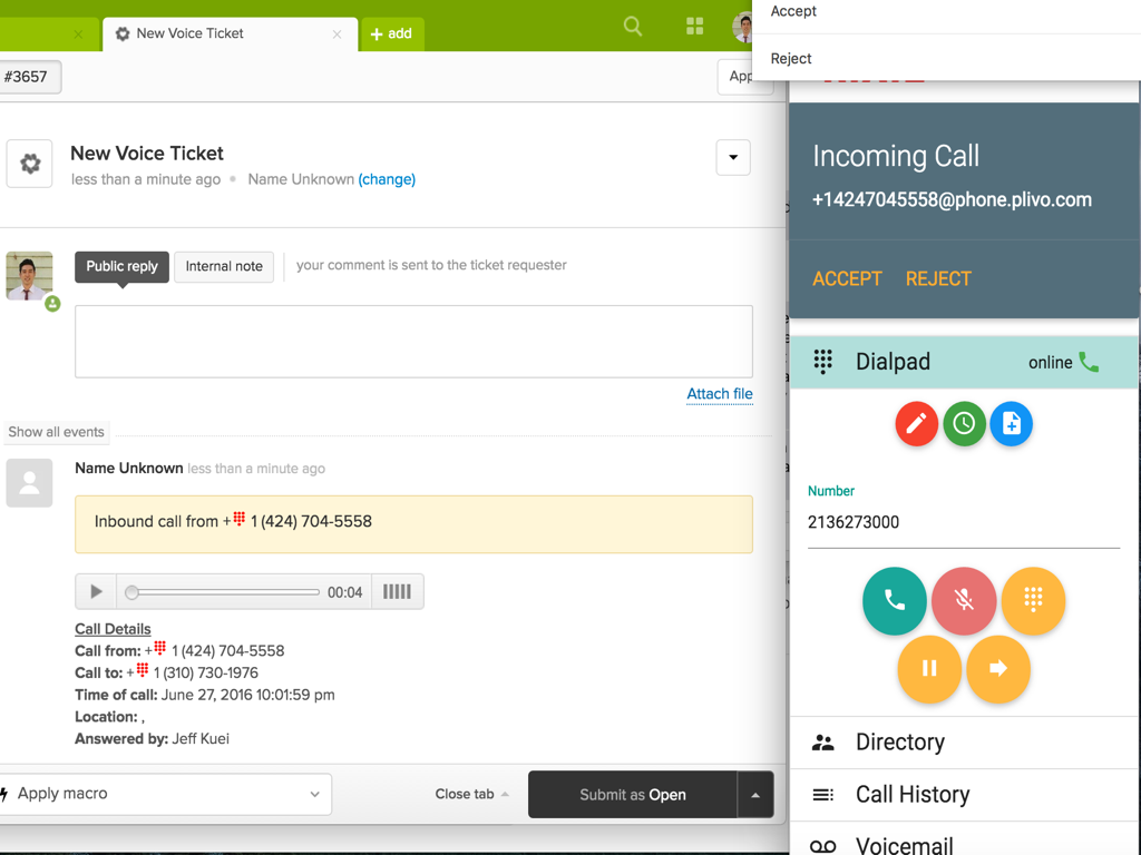 A seamless voice and support phone call integration with Zendesk. Connect to your existing phone service (pbx, cellphone, VOIP) or setup a new cloud phone system from scratch that can be used all across the world.