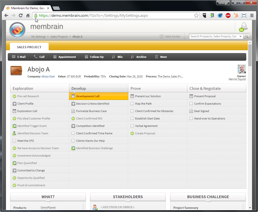 Membrain is a sales improvement platform for teams working with complex B2B sales. Membrain lets you continually fine tune your sales process and provide coaching to help your sales people make their numbers.