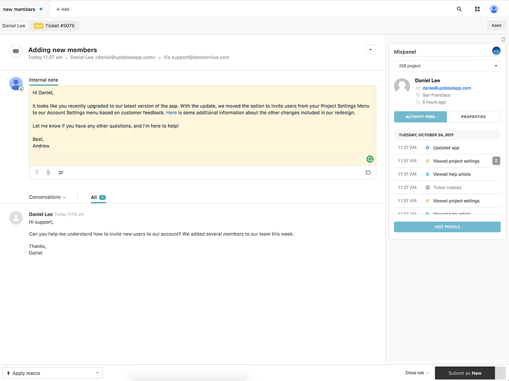 Learn more about the Mixpanel App for Zendesk and for any questions contact us here.