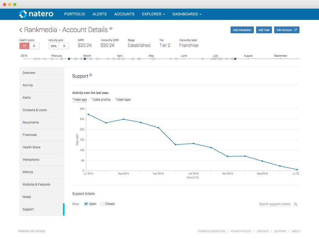 The Natero and Zendesk integration allows Customer Success Managers to view, analyze, and track support tickets related to their accounts. Natero leverages this data to generate customer health scores and trigger alerts that enable organizations to manage Customer Success proactively.