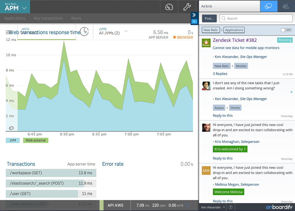 - Have Zendesk agents directly collaborate with application users with in-app messages, onboarding and file sharing.