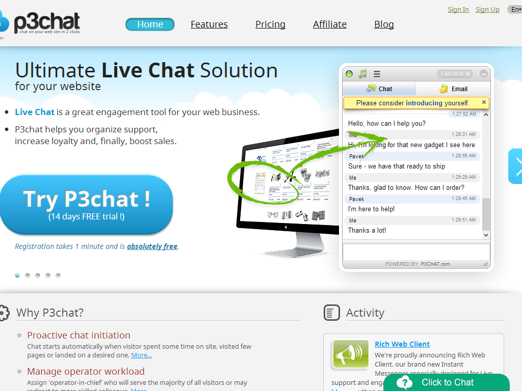 Professional live chat service for support and active sales