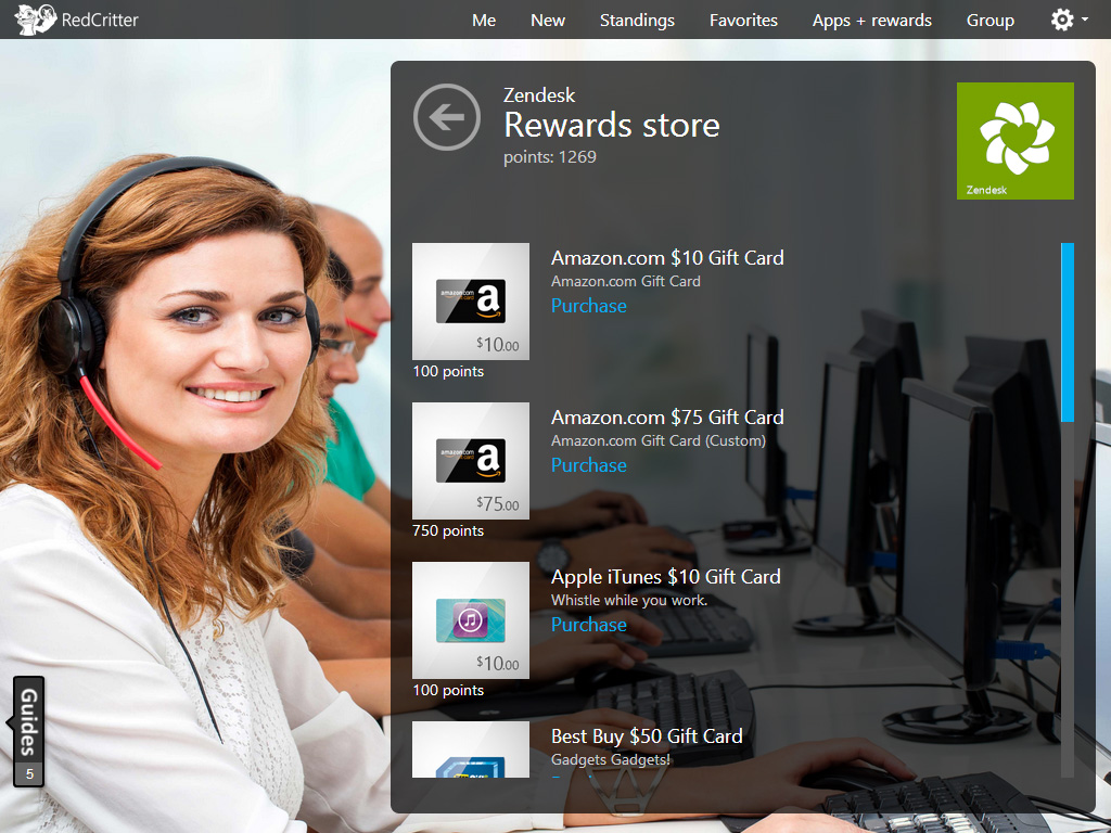 RedCritter is a platform for enhancing Zendesk and other other business systems with gamification elements like badges, points, rewards, skill tracking, and more. Create a rewards store and assign points, which will then be distributed based off actions performed in Zendesk. RedCritter can be configured to capture all sorts of elements and desired activities from Zendesk to help motivate your support team to give the best support possible.