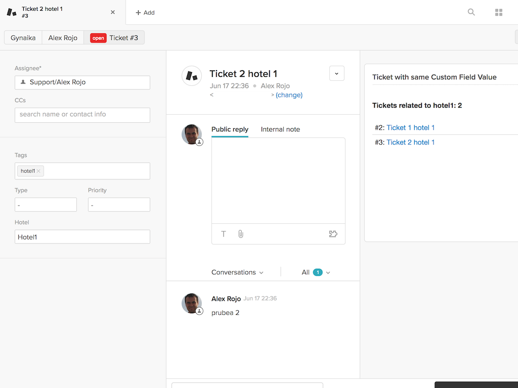 A Zendesk app that shows a list of tickets that have the same Custom Field(s) value(s) as the current ticket being viewed. Custom Field(s) to be used are configuration parameters of the app.