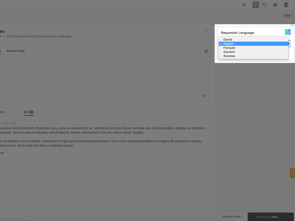 This app allows your agents to see and change the requester’s language directly from the ticket page.