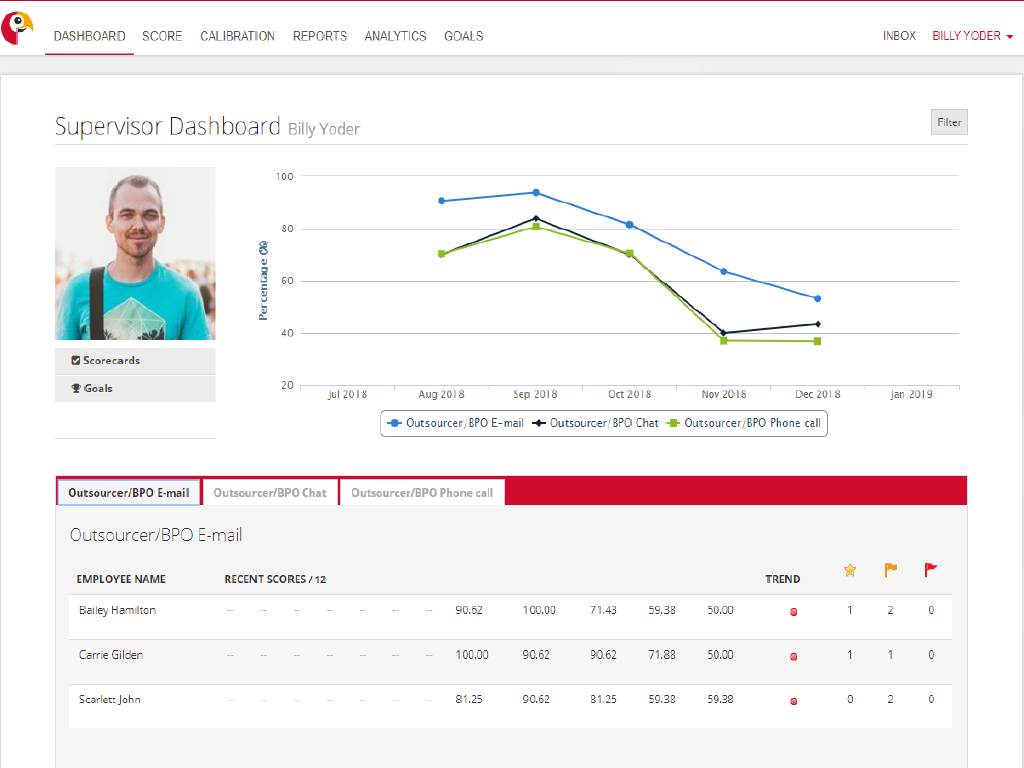 Dig deep into your call center’s quality scores to carry out root-cause analysis, identify common pitfalls, broken processes and training gaps, or catch people doing a good job! Scorebuddy’s powerful analytics tool allows users to report in 27 ways at the click of a button.
