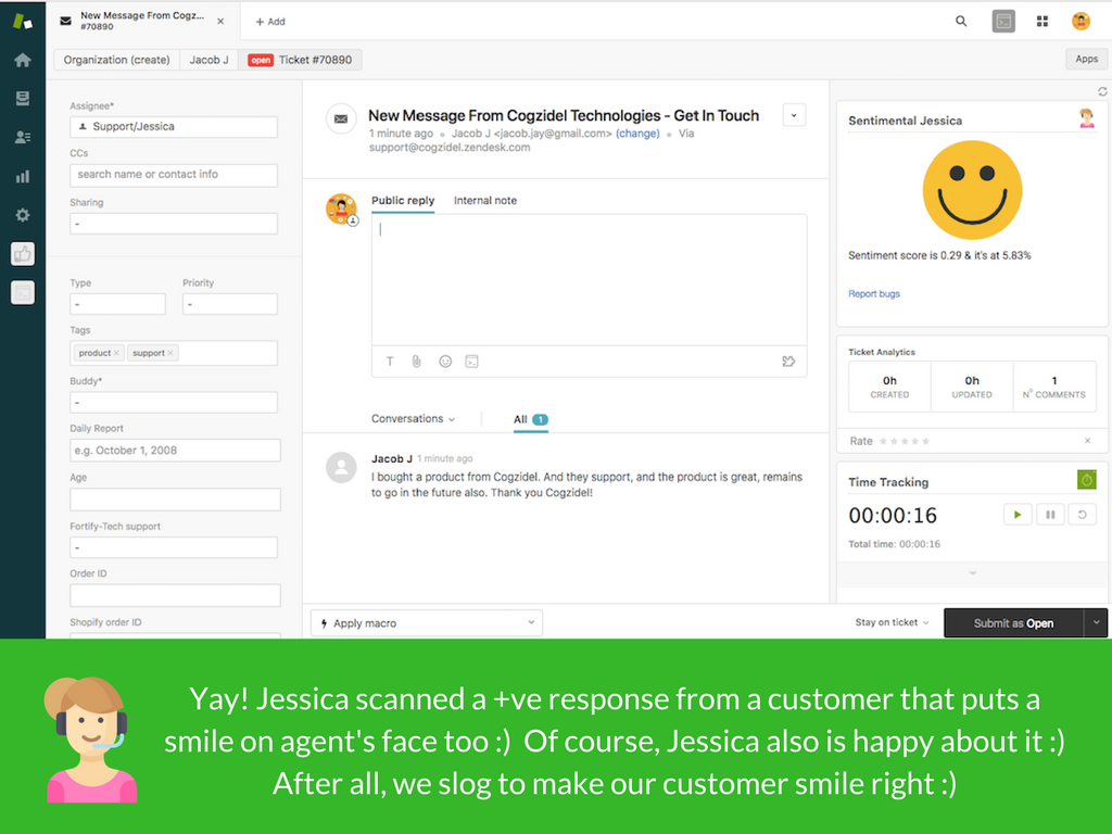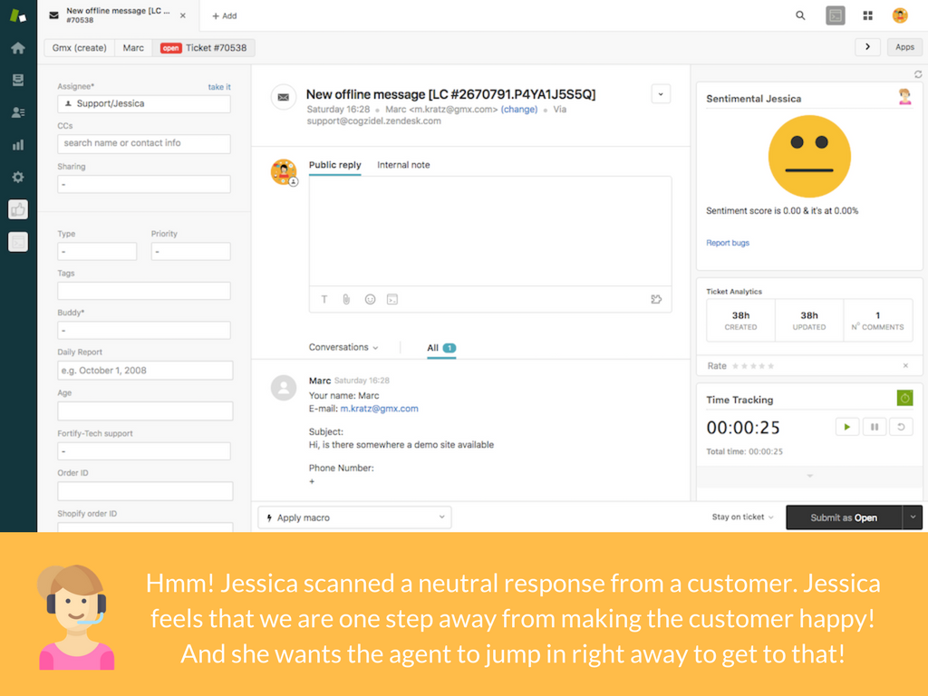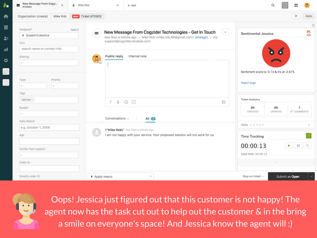 Jessica tells you when your customer is happy :) or angry :(. Try Jessica.