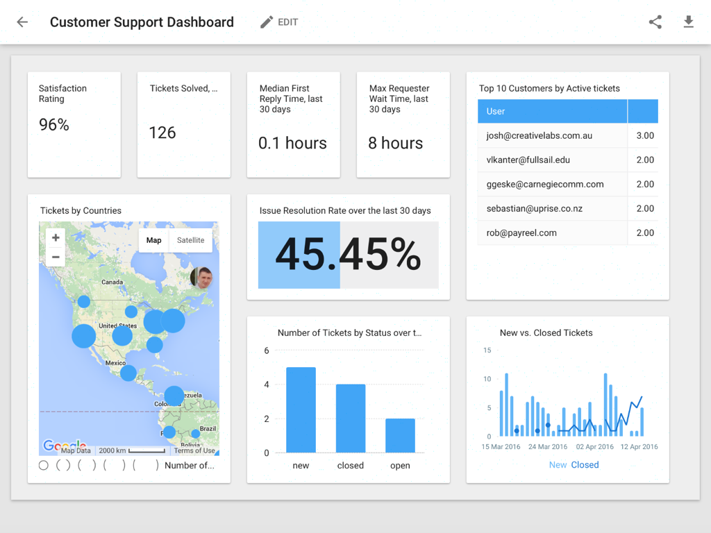 1. Build detailed reports showing number of open tickets, response time and agents activity without logging to your Zendesk account.