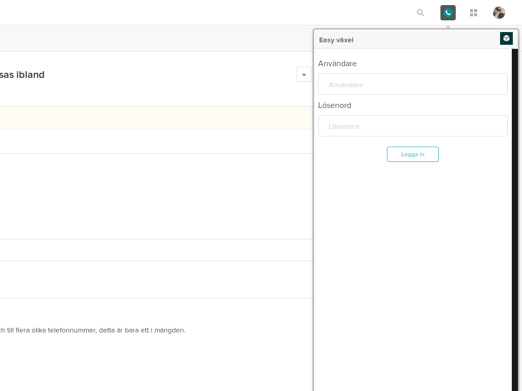 A phone icon will be added to the top bar in the Zendesk system after installing the app. To configure your integration, tap this icon to log in to your account. Use your full SolunoBC username (including domain) and password.