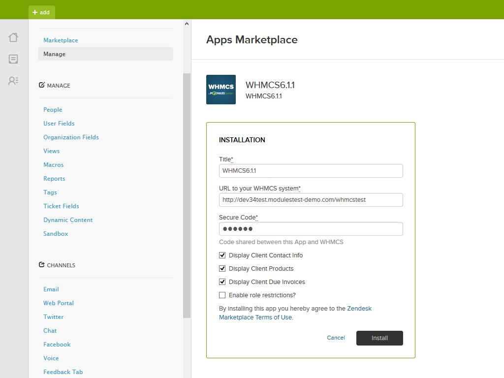 For step-by-step instructions on how to install the widget, see the documentation: https://www.docs.modulesgarden.com/WHMCSWidgetForZendesk
