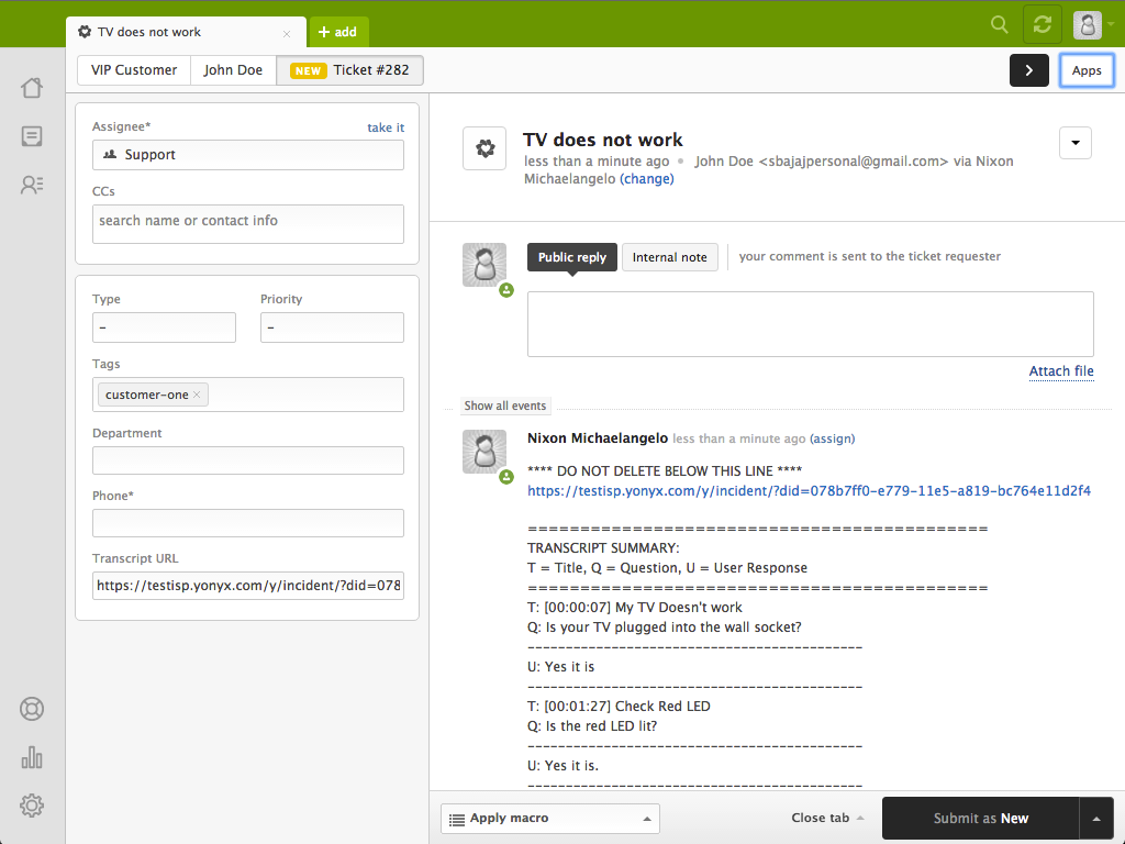 Include Transcript URL: Includes the Transcript URL in ticket internal notes