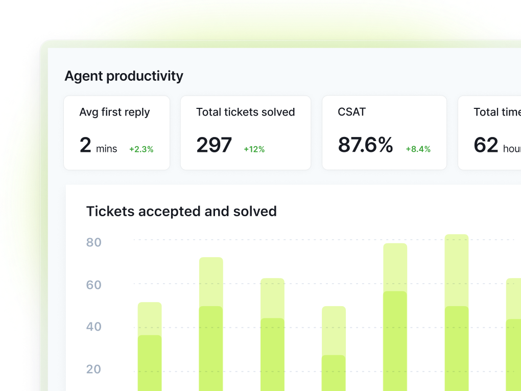 Equip your agents with powerful AI tools and workflows that boost efficiency and elevate customer experiences across every channel.