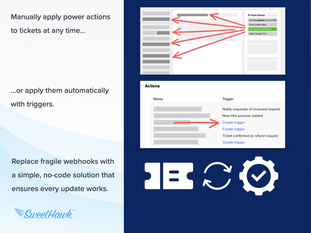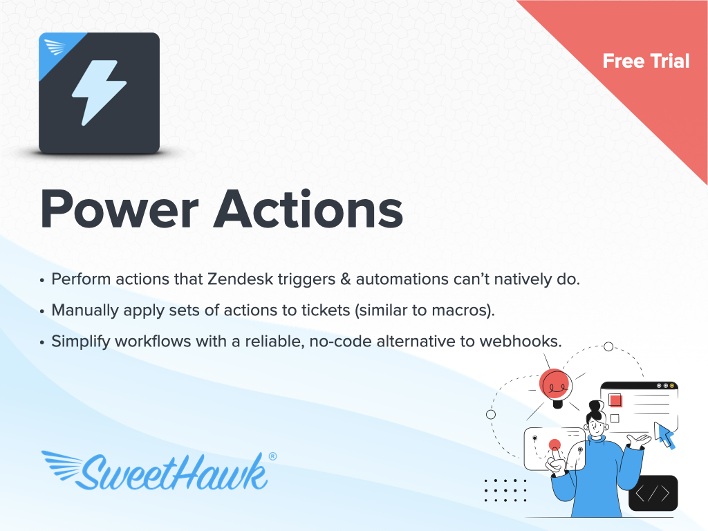 Forget fragile and complex webhook setups — Power Actions provides a simple, no-code alternative that ensures every update is successful. With smart delivery handling behind the scenes, your actions always go through — giving you total confidence in your Zendesk workflows.